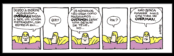 Talentoso cartunista, Laerte. Entre tantos personagens criados pelo artista o que mais admiro é Overman. Sua personalidade é uma mistura de Super Homem com Batman - tem a força do primeiro e poder de dedução contraditório do segundo. Seu maior inimigo é seu próprio ego. Ele lembra muita gente que conhecemos.